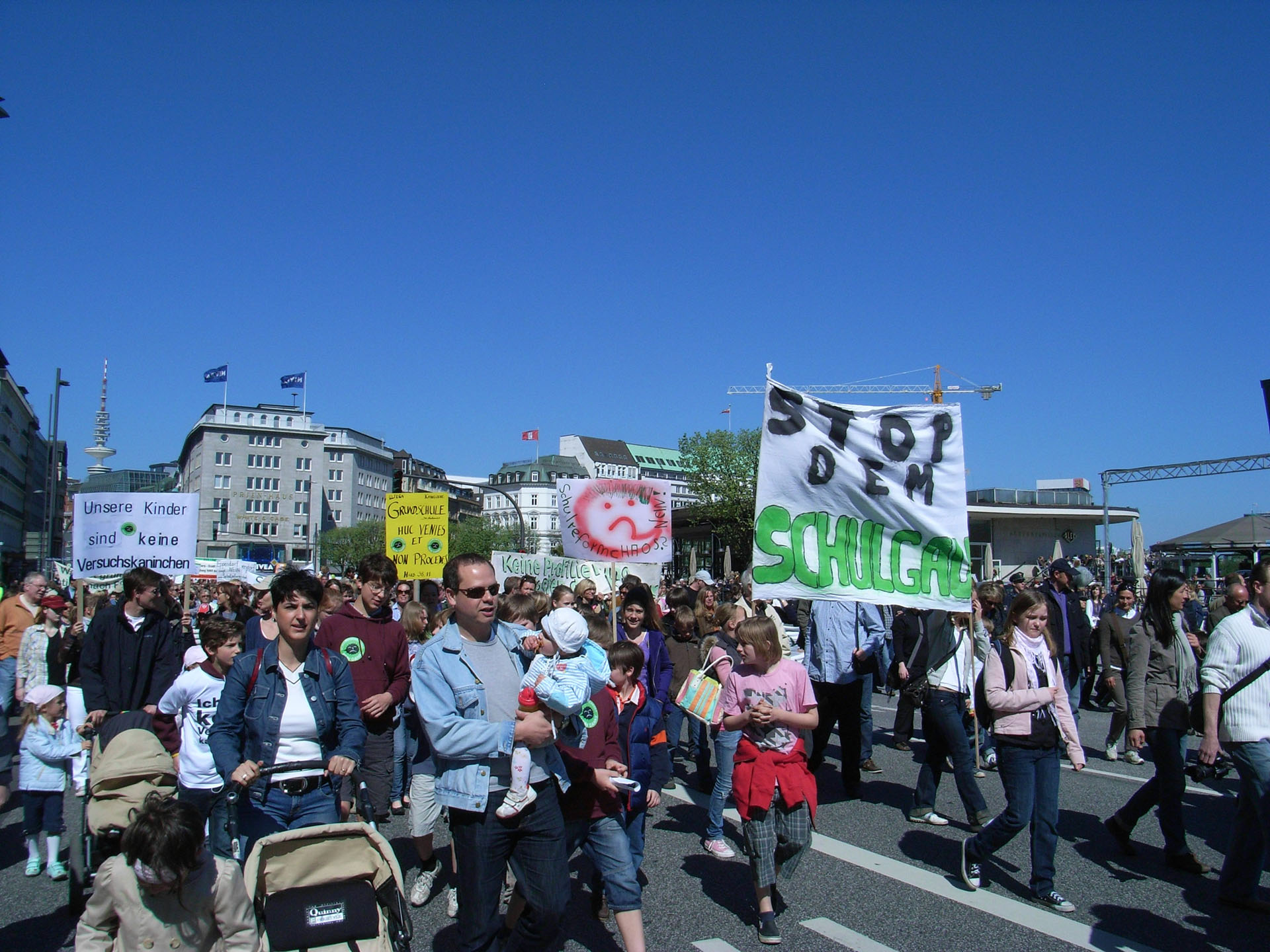 Doch wie echt ist diese Harmonie? Ist der Koalitions-Friede heilig, weil das Experiment auf keinen Fall scheitern darf? Beide Parteien sollen auf Geheiß ihrer Zentralen in Berlin ein Erfolgsmodell für den Bund präsentieren. Das „Versuchslabor Hamburg“ müsste dafür mindestens eine Legislaturperiode halten. Allerdings zeigen sich mittlerweile erste Risse im schwarz-grünen Fundament. Die Schulreform, ein grünes Vorzeigeprojekt, könnte gar zur Schicksalsfrage für Schwarz-Grün werden. Zwar stellt sich Ole von Beust demonstrativ hinter seine Schulsenatorin Christa Goetsch, aber viele Wähler der CDU fühlen sich verschaukelt. Im Wahlkampf hatte von Beust noch den Erhalt der Gymnasien versprochen – durch die geplante Einführung der Primarschule gehen den Gymnasien jedoch zwei komplette Jahrgänge verloren. Eine Elterninitiative mit dem Schauspieler Sky du Mont an der Spitze organisiert den Protest, zur ersten Demo kamen fast 5000 wütende Eltern und Schüler.
